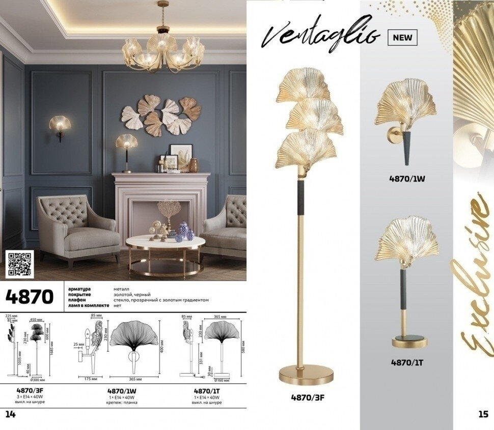 Сохранить4870/1W HALL ODL_EX22 97 золотой/чёрный/стекло Бра E14 1*40W VENTAGLIO интересное: