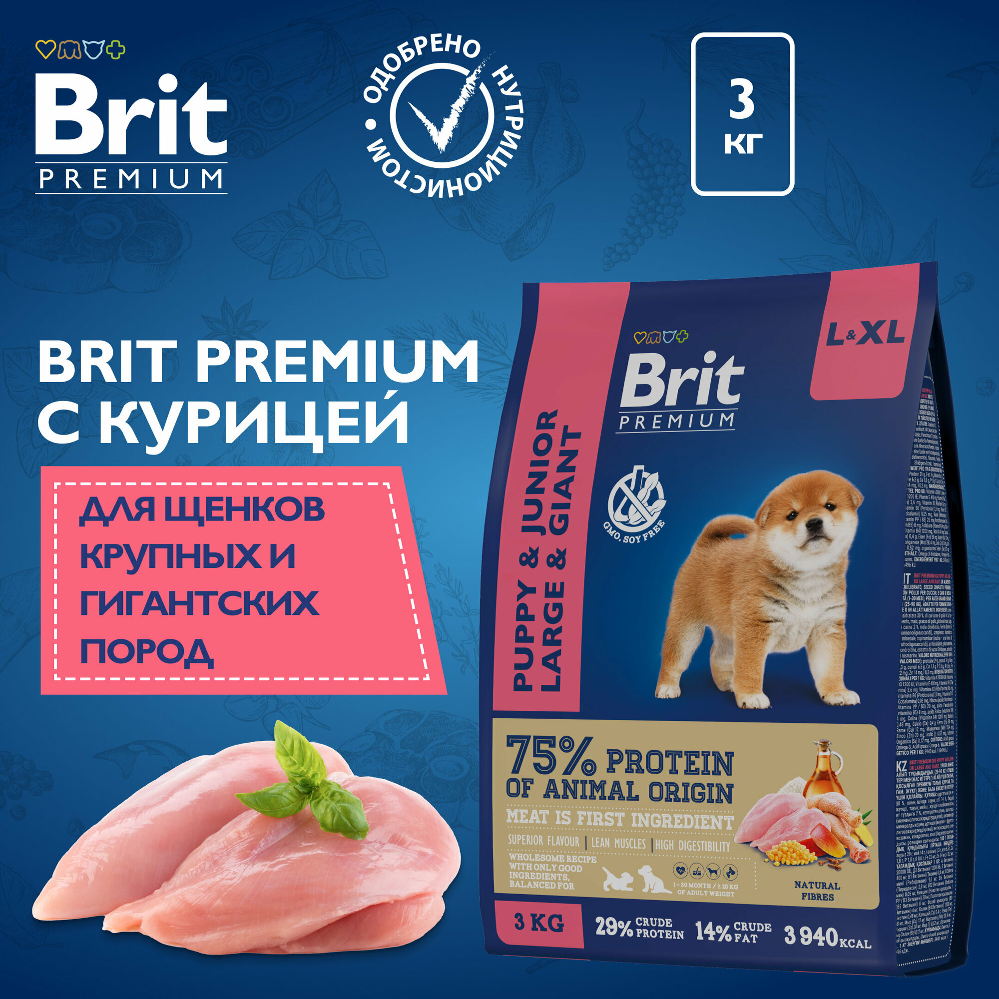 Корм BRIT Premium Dog Puppy and Junior Large and Giant для щенков и молодых собак крупных и гигантских пород, с курицей 3 кг