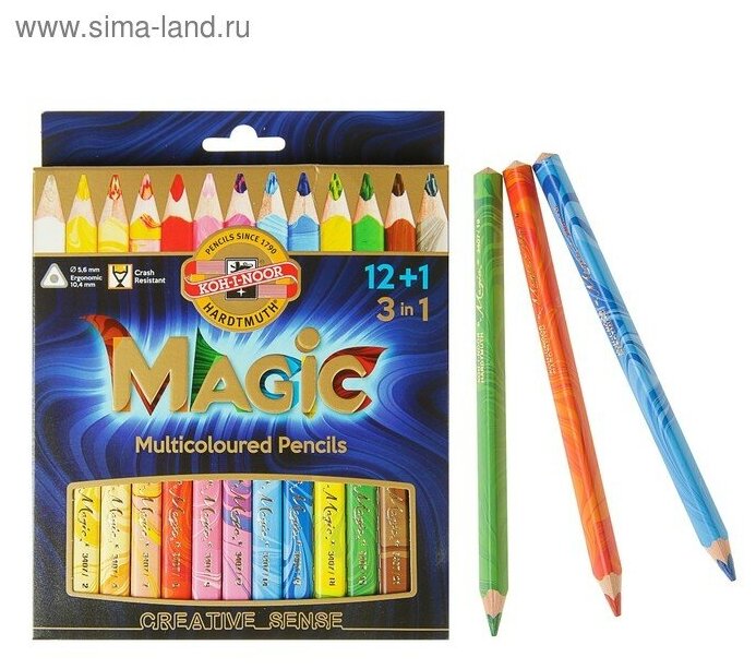 Карандаши с многоцветным грифелем KOH-I-NOOR набор 13 шт, "Magic", трехгранные, 5,6 мм (3408013001KS)