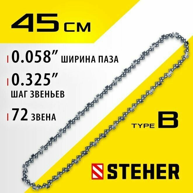 type B шаг 0.325" паз 1.5 мм 72 звена цепь для бензопил STEHER 75302-45