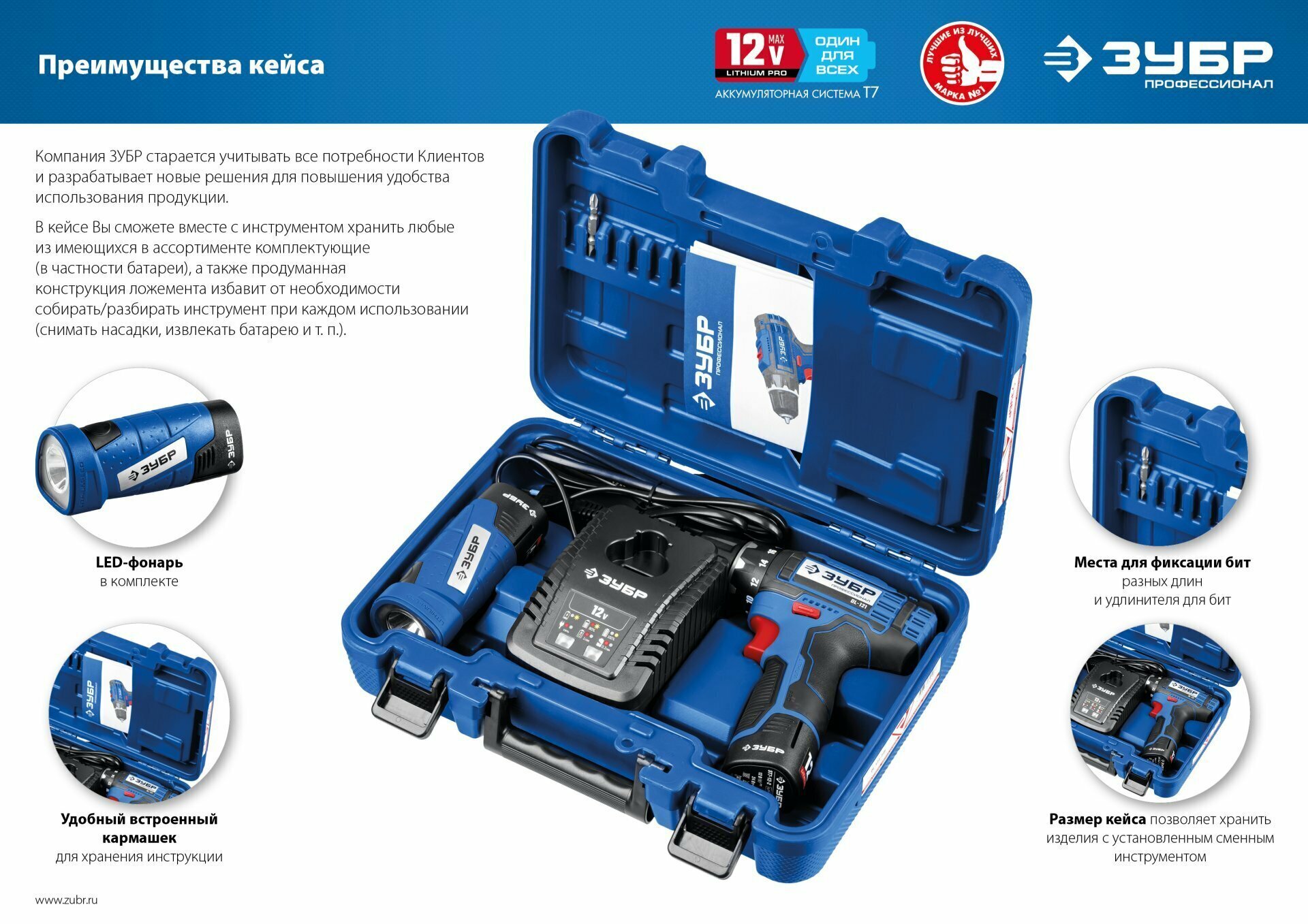 ЗУБР T7, 12 В, 2.0 Ач, аккумуляторная батарея, Профессионал (ST7-12-2)