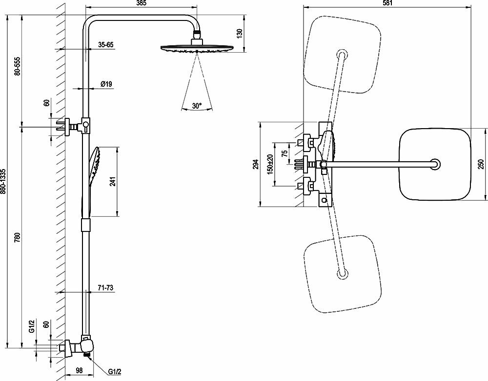 Душевая стойка Damixa 10° Free TD F 091.20/150