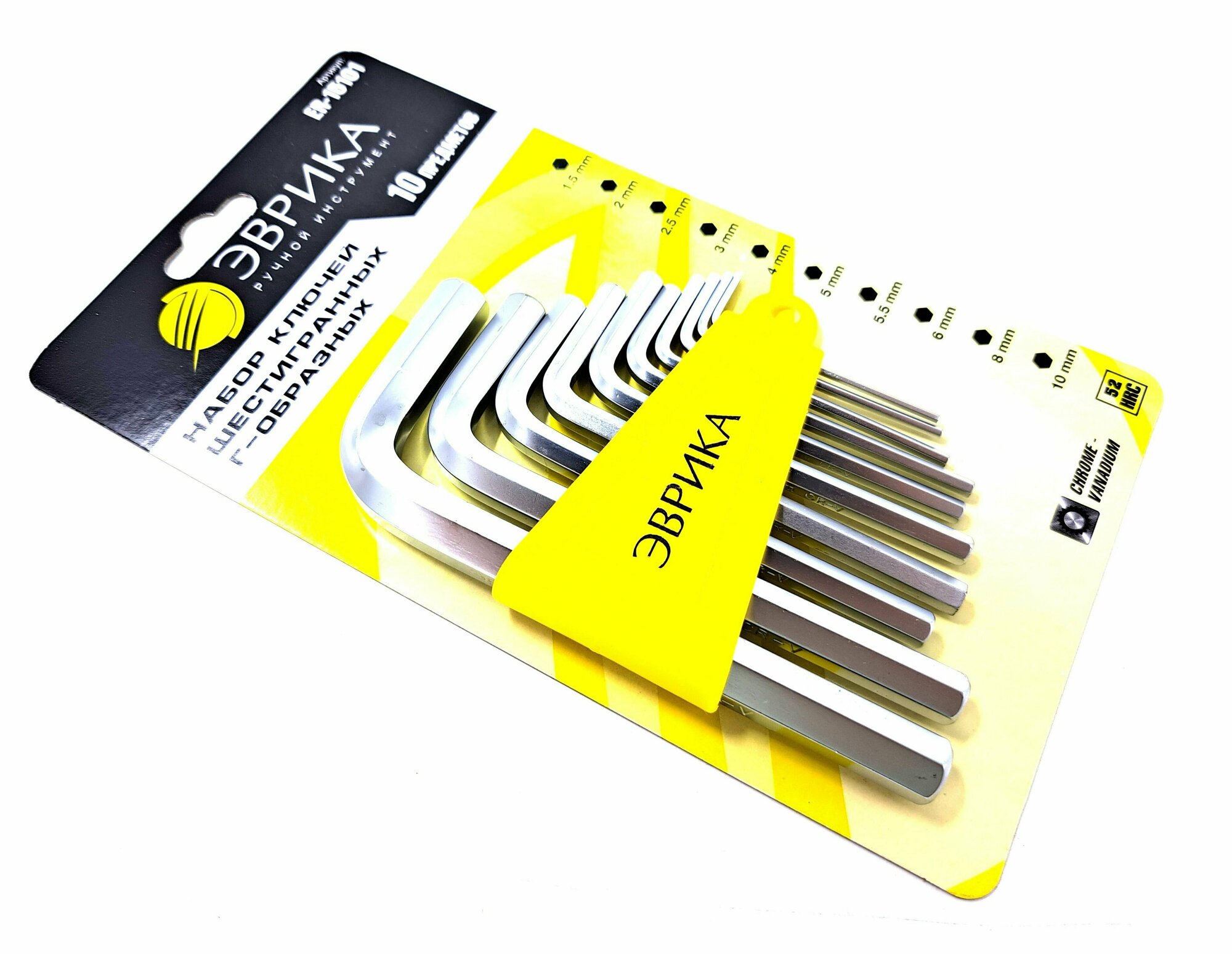 Набор ключей шестигранных 1.5-10мм Г-образных 10 предметов эврика ER-15101