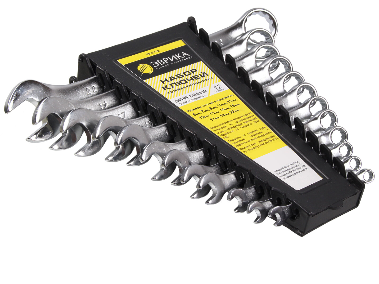 Набор ключей комбинированных 6-22мм 12 предметов в холдере изгиб 15град. сатинированные, эврика ER31122 (1 шт.)