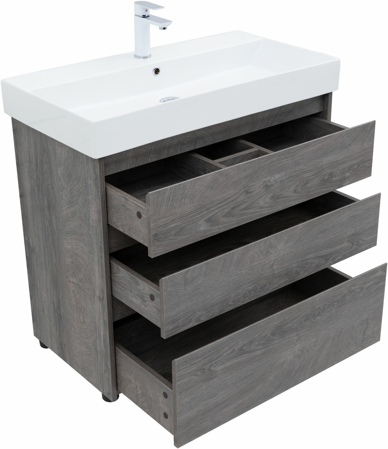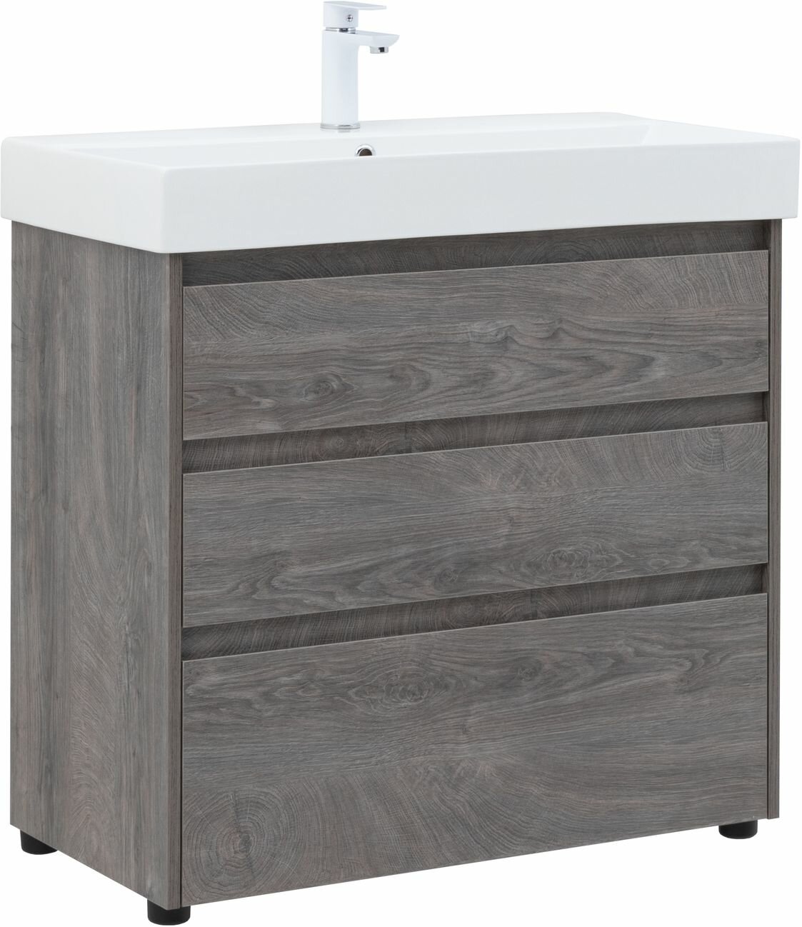Тумба с раковиной Aquanet Nova Lite 85 напольная, дуб рошелье, 3 ящика