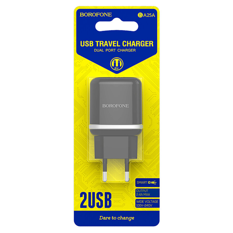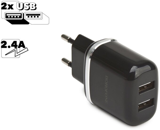 Сетевое зарядное устройство BOROFONE BA25A Outstanding 2xUSB, 2.4A, черный