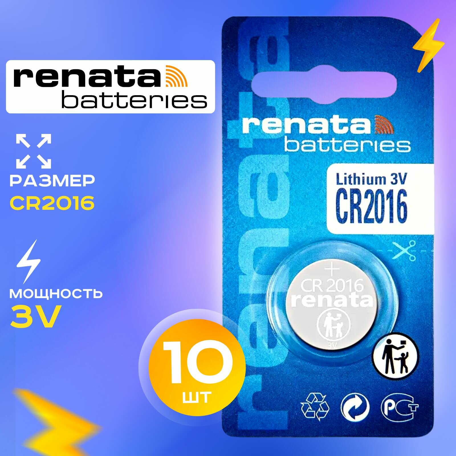 Купить Батарейка Renata CR2016, в упаковке: 10 шт.