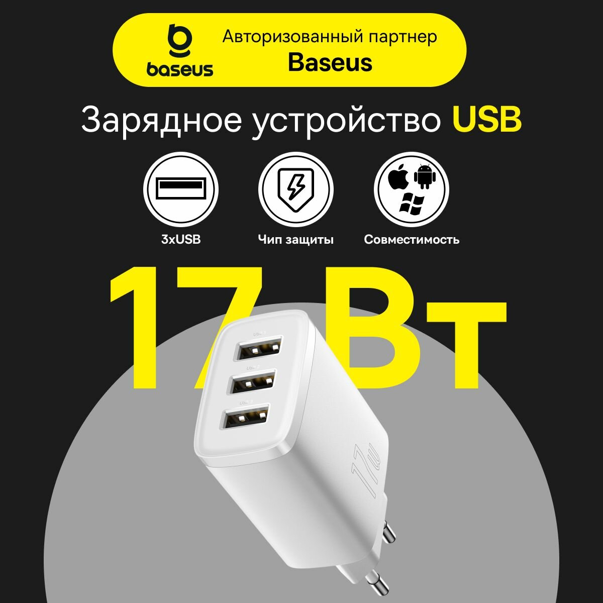 Купить Сетевое зар. устр. Baseus Compact 17W 3USB (CCXJ020102) белое