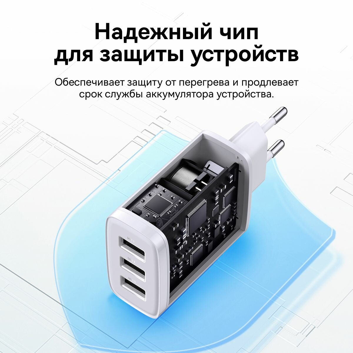 Зарядное устройство с 3-мя USB-портами Baseus / быстрая зарядка для iPhone / адаптер 17W Белый CCXJ020102