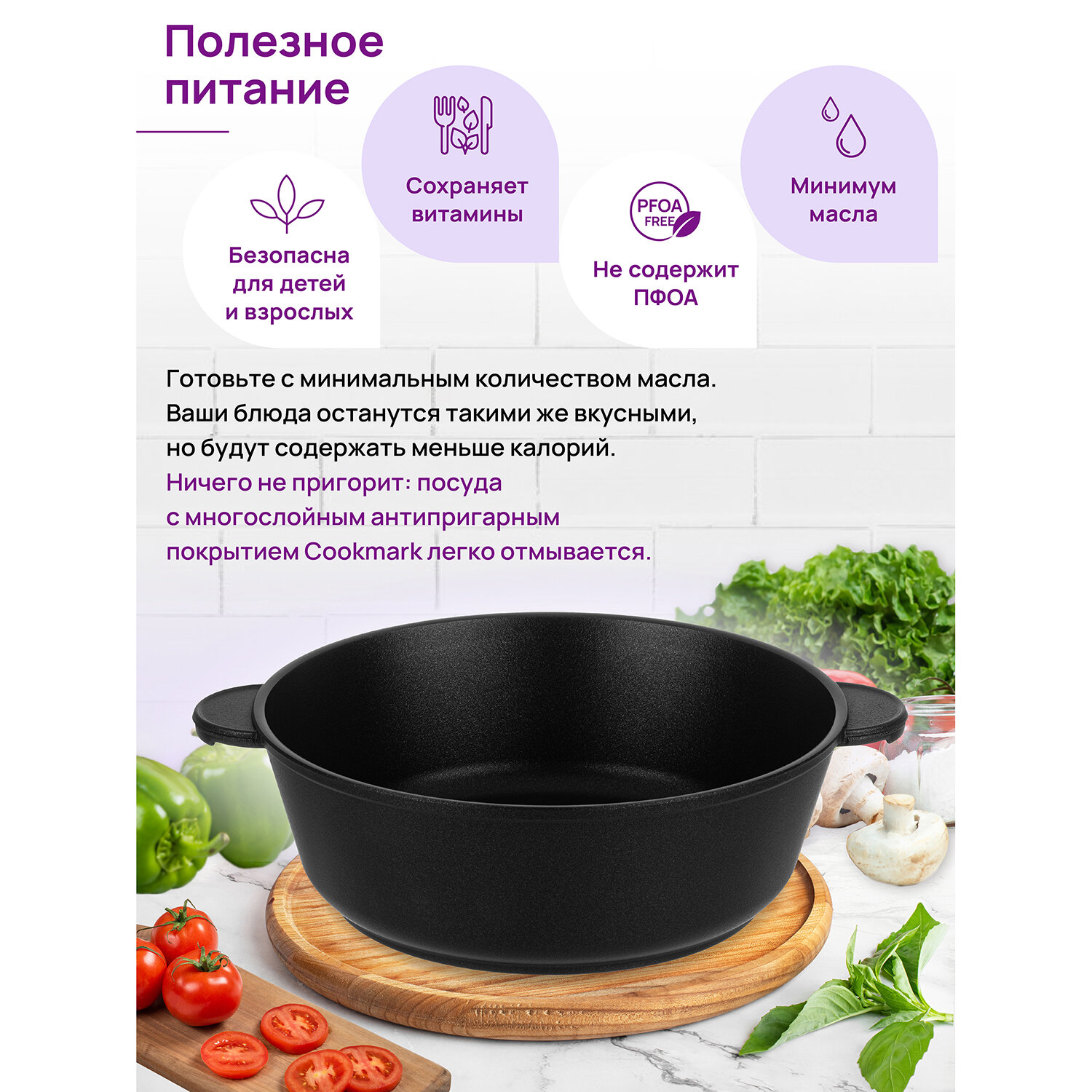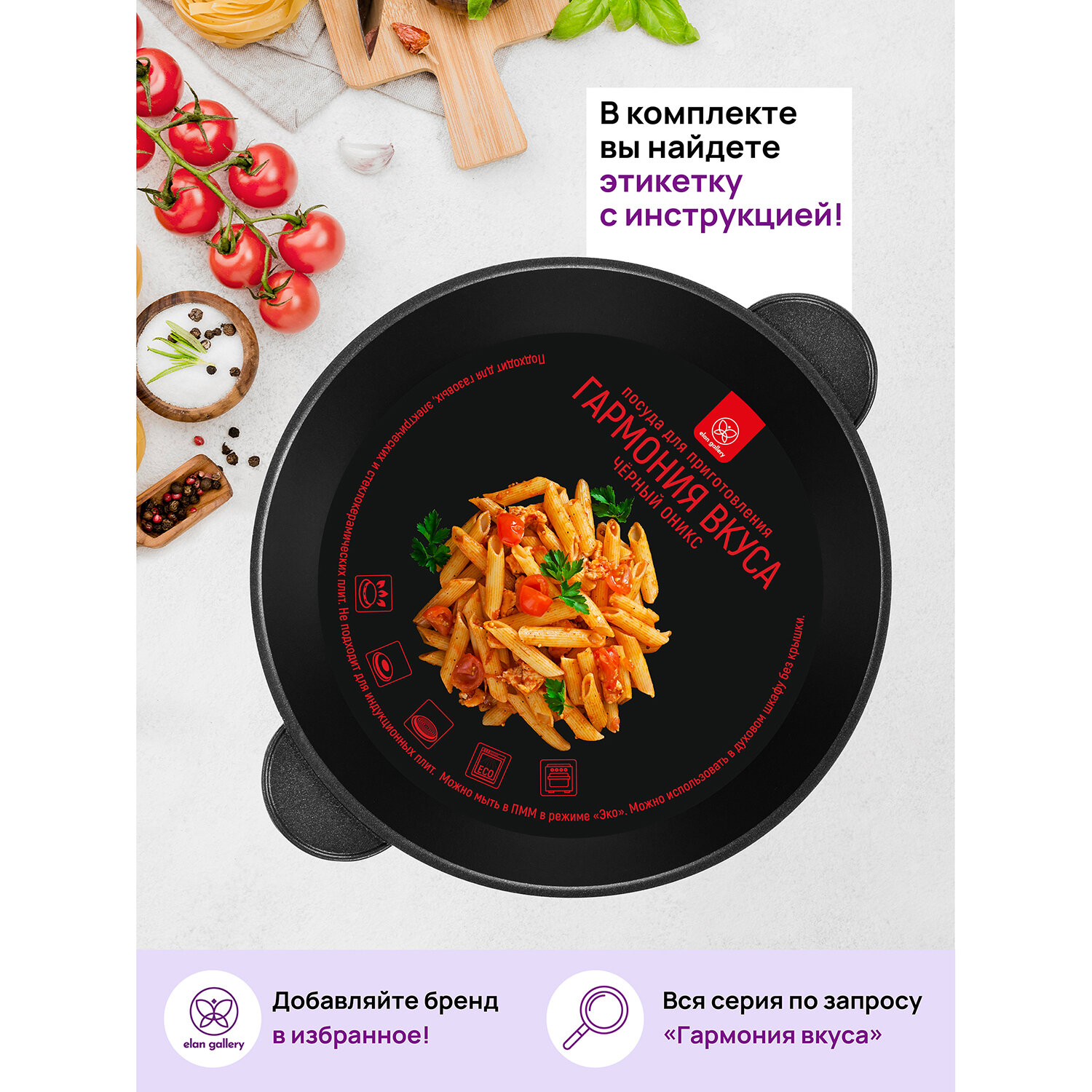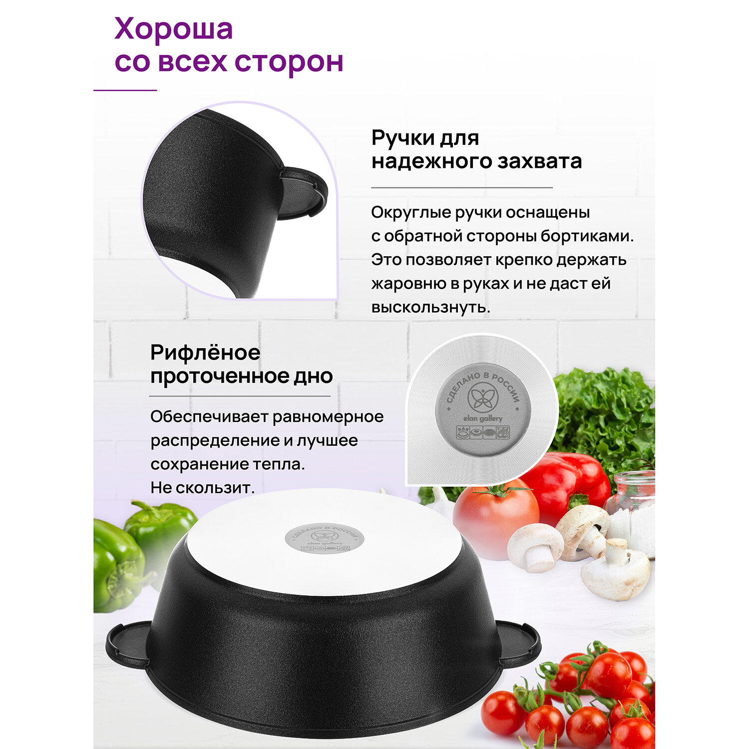 Жаровня Elan Gallery (сотейник) 26 см 3,7 л гармония вкуса "Черный Оникс" С крышкой (120653) интересное: