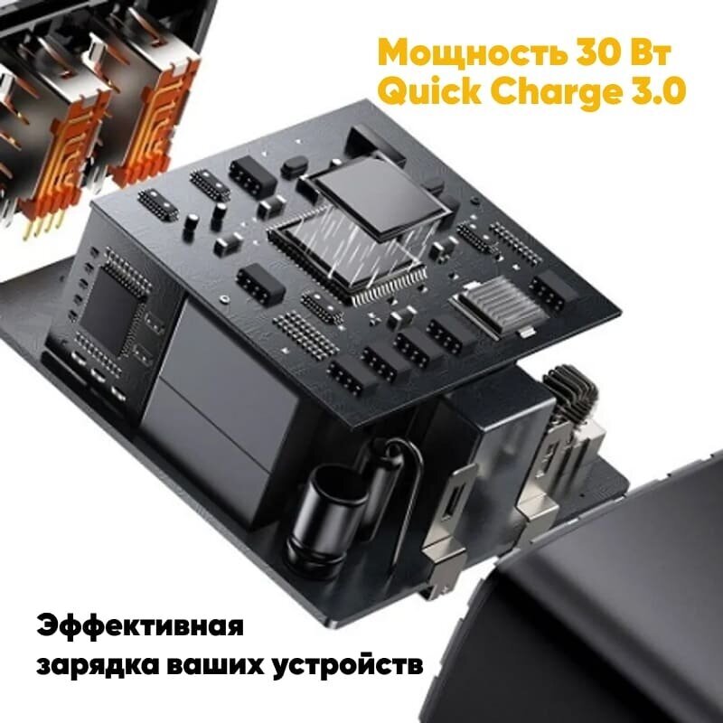 | Минусы: | При подключении 2-х и 3-х устройств быстрая зарядка работает только на одном устройстве. На 2-х портовом ЗУ Baseus Super si 30w, за меньшие деньги, быстрая зарядка работает на двух портах. |
