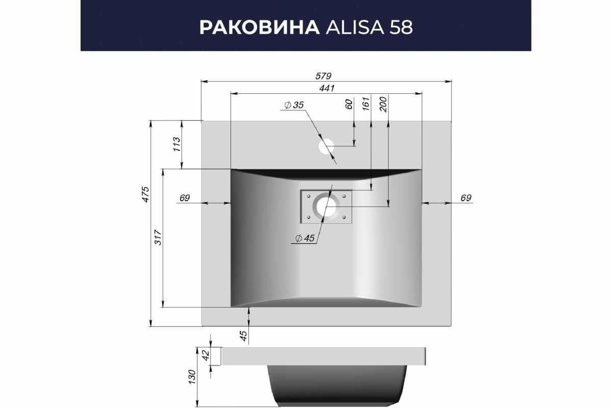 Раковина для ванной Итана Alisa 58 579х475х130 интересное: