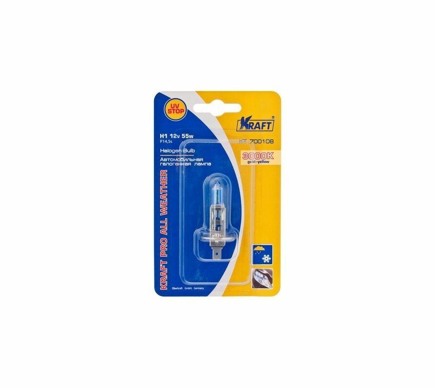 Автолампа Kraft Pro All Weather H1 12V 55W (P14,5S) /T=3000K Kraft арт. KT 700108