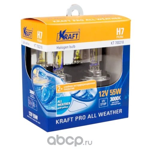 KRAFT KT700218 Лампа 12 В H7 55 Вт PX26d Pro All Weather 2 шт. блистер Kraft
