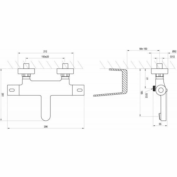 Смеситель настенный термостатический для ванны без гарнитуры Termo 300 TE 023.00/150