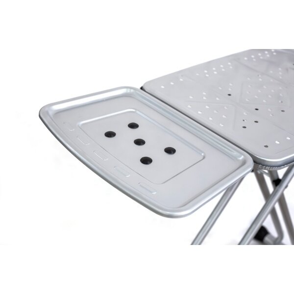 | Плюсы: | Устойчивая доска, широкая поверхность, не маркий чехол, удобная розетка и подставка под утюг |