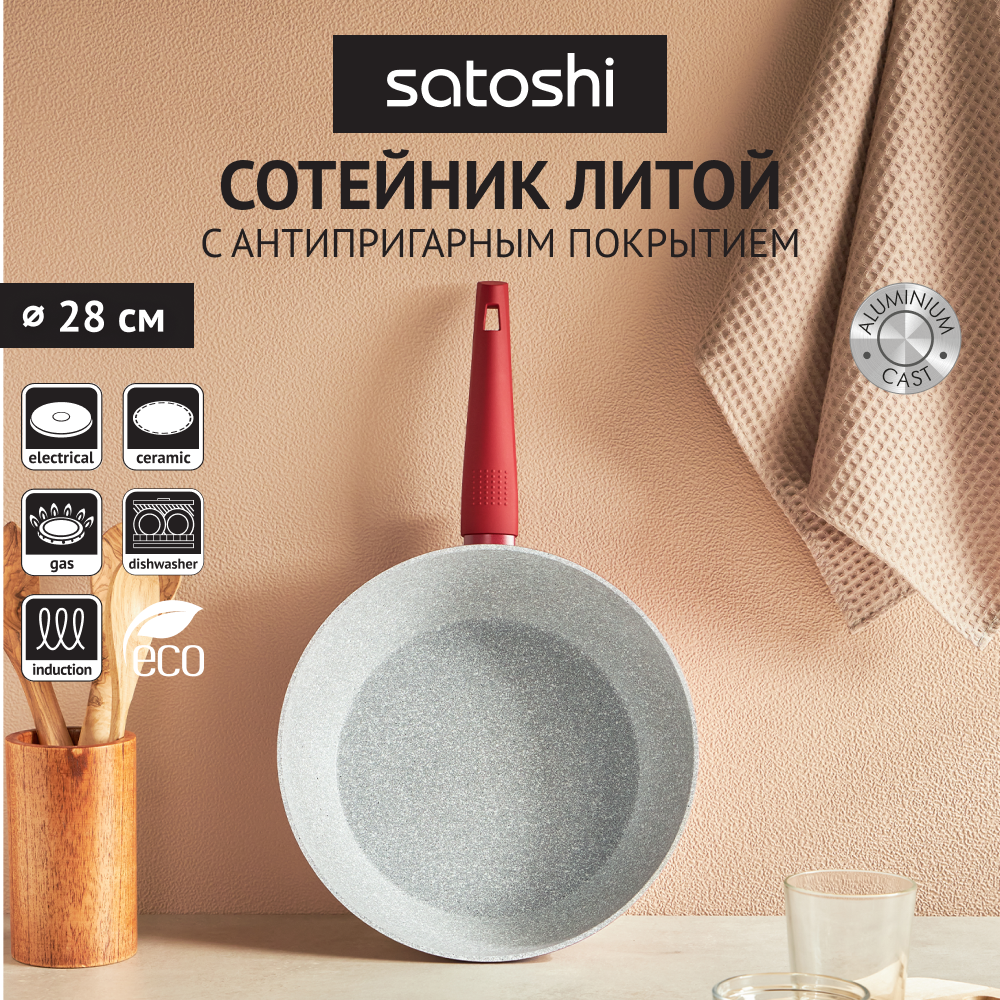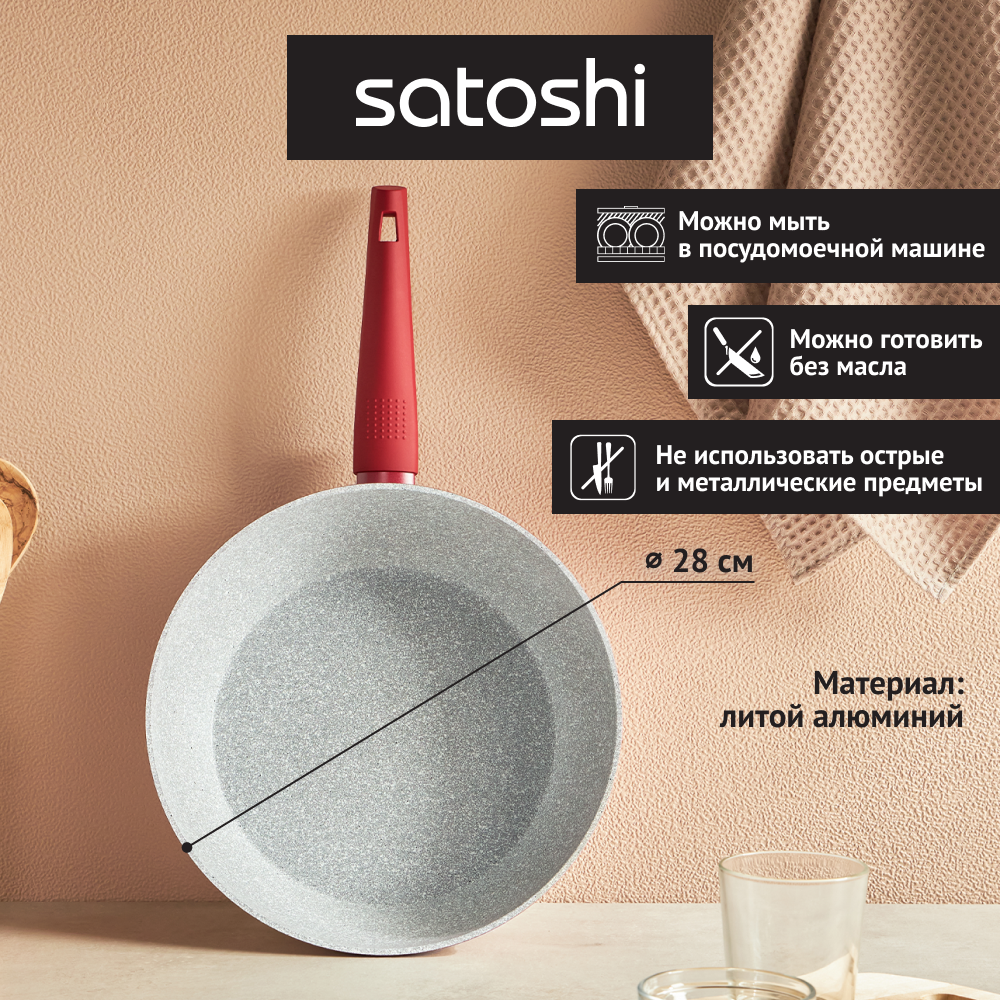 Купить SATOSHI Верден Сотейник литой d. 28см, антипригарное покрытие мрамор, индукция
