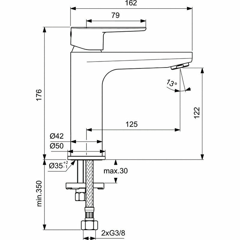Смеситель для раковины без донного клапана Ideal Standard Cerafine O BC554XG