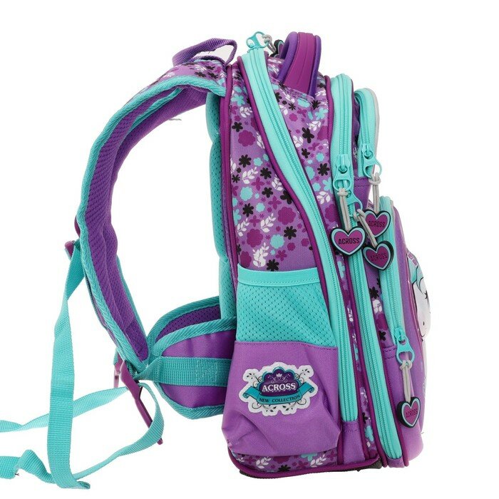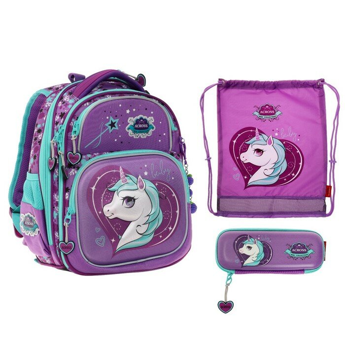 Рюкзак каркасный 35 х 28 х 15 см, Across, наполнение: мешок, пенал, брелок, фиолетовый