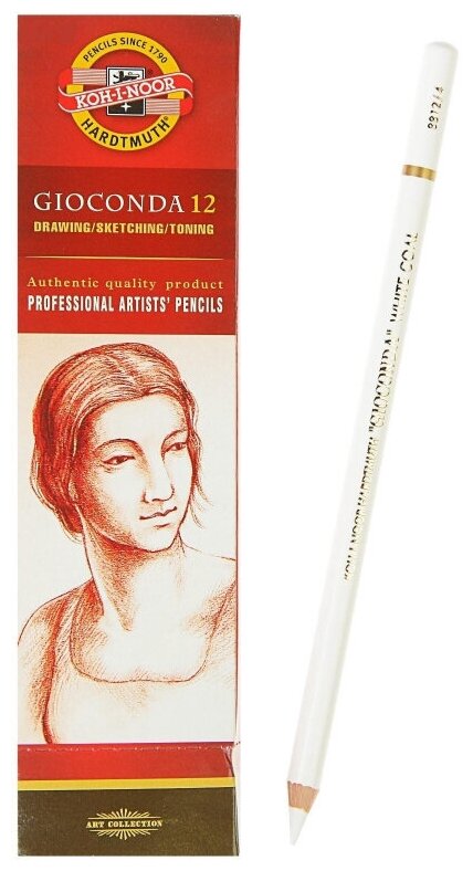 Угольный карандаш Koh-I-Noor "Gioconda Extra 8812" B, белый, заточен, 12 шт.