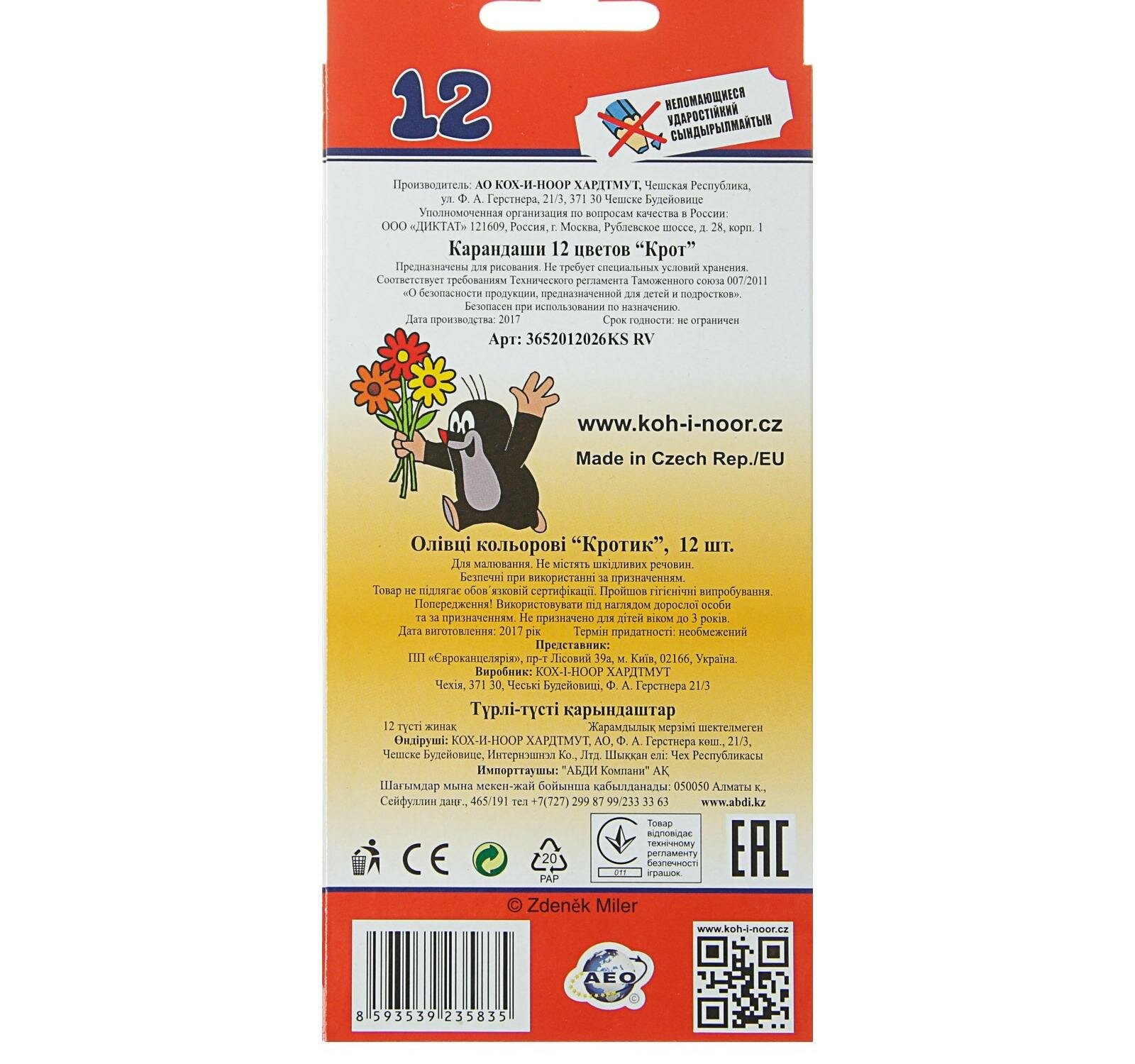 Koh-I-Noor Карандаши 12 цветов Koh-I-Noor 3652 "Крот", европодвес