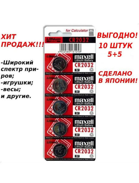 Батарейка Maxell CR2032 (10 шт) BL5 /Элемент питания Максел CR2032 BL5
