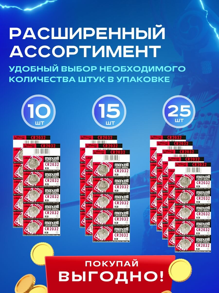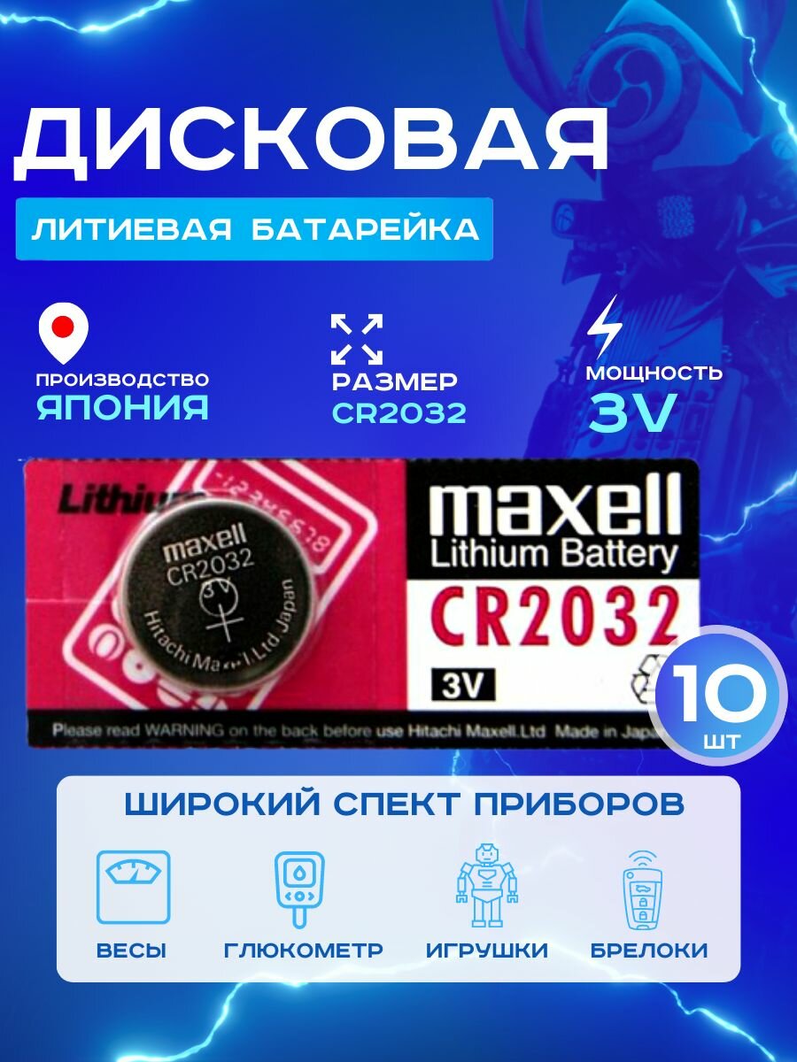 Купить Литиевая батарейка таблетка Maxell CR2032, 10 штук