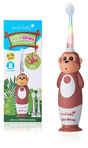 Зубная щётка электрическая BRUSH BABY Sonic WildOnes Обезьяна, 0-10 лет