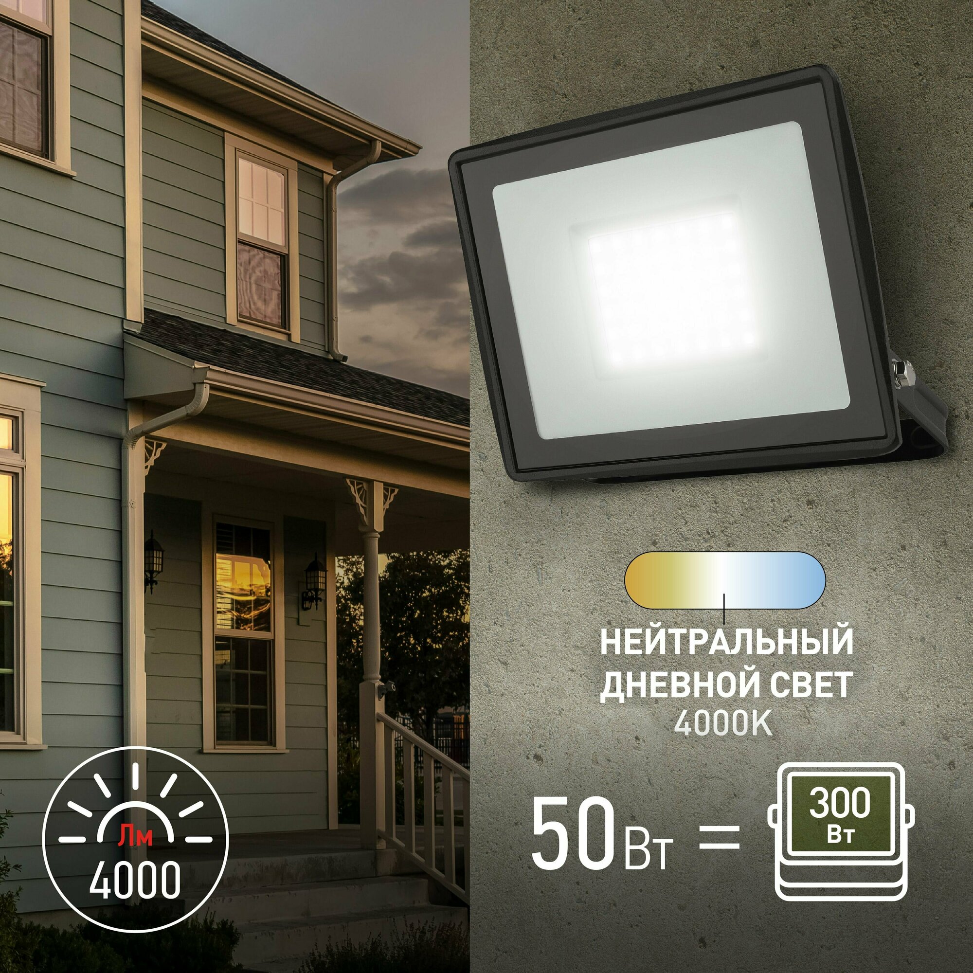 прожектор ЭРА Эра LPR-023-0-40K-050 50Вт 4000K 4000Лм IP65