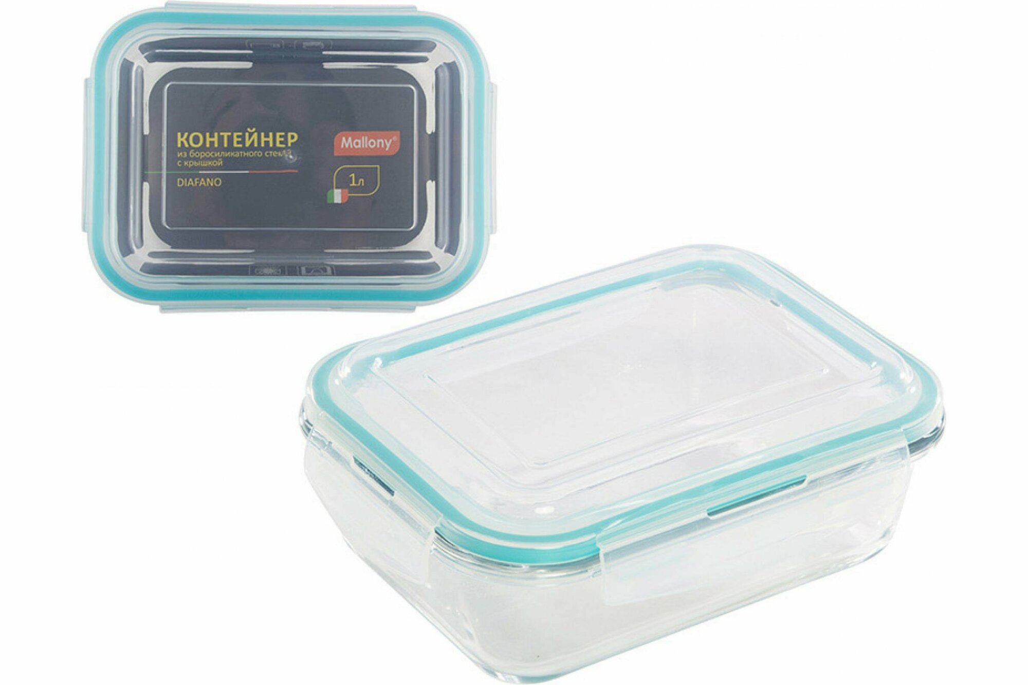 Контейнер Mallony DIAFANO 370 мл из жаропрочного стекла с крышкой из пластика, прямоугльный температура -20 до +200 С 005470