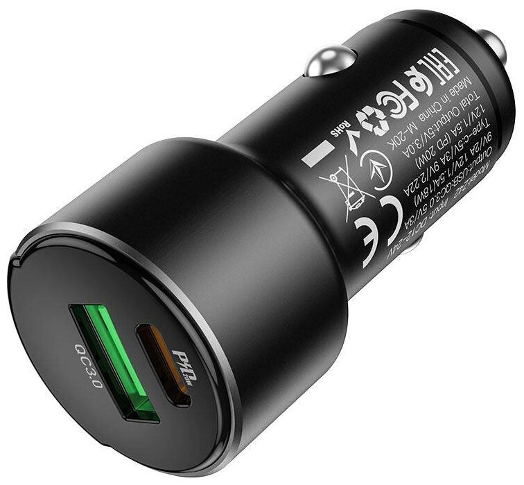 Автомобильная зарядка (от прикуривателя) HOCO Z42, PD20, QC3.0, один порт USB, один порт Type-C, черная
