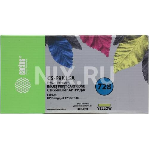 Картридж струйный Cactus Cs-f9k15a 728XXL желтый (300мл) для HP DesignJet T730, T830 Cs-f9k15a .