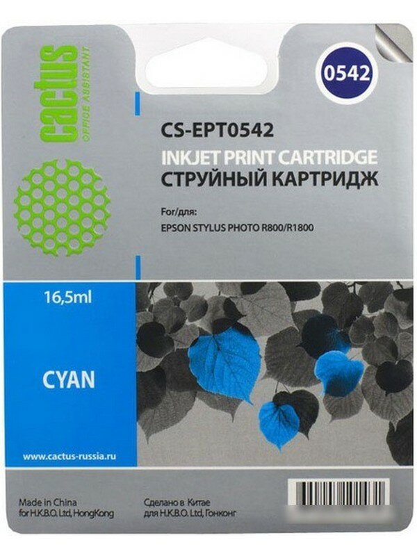 Картридж струйный Cactus CS-EPT0542 голубой для Epson Stylus Photo R800/R1800 (16.2мл) CS-EPT0542
