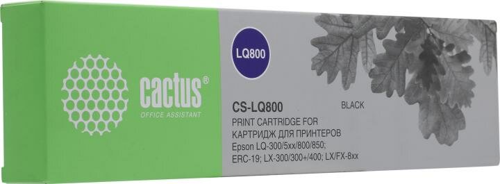 Картридж Cactus CS-LQ800 для Epson LQ-300 / 5xx / 800 / 850 / ERC-19 / LX-300 / 300+ / 400 / FX-8xx, 3200000 зн, черный