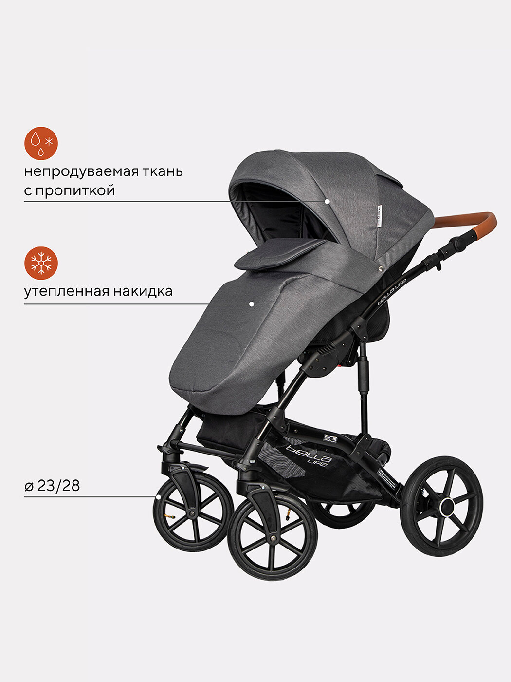 Коляска BELLA LIFE (3 в 1) (RIKO BASIC) 01 Grey Fox (серый)