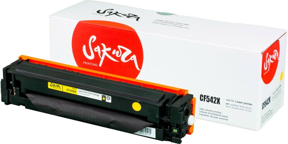 Картридж SAKURA PRINTING CF542X (203X) для HP M254, MFP M280/281, желтый, 2 500 к.