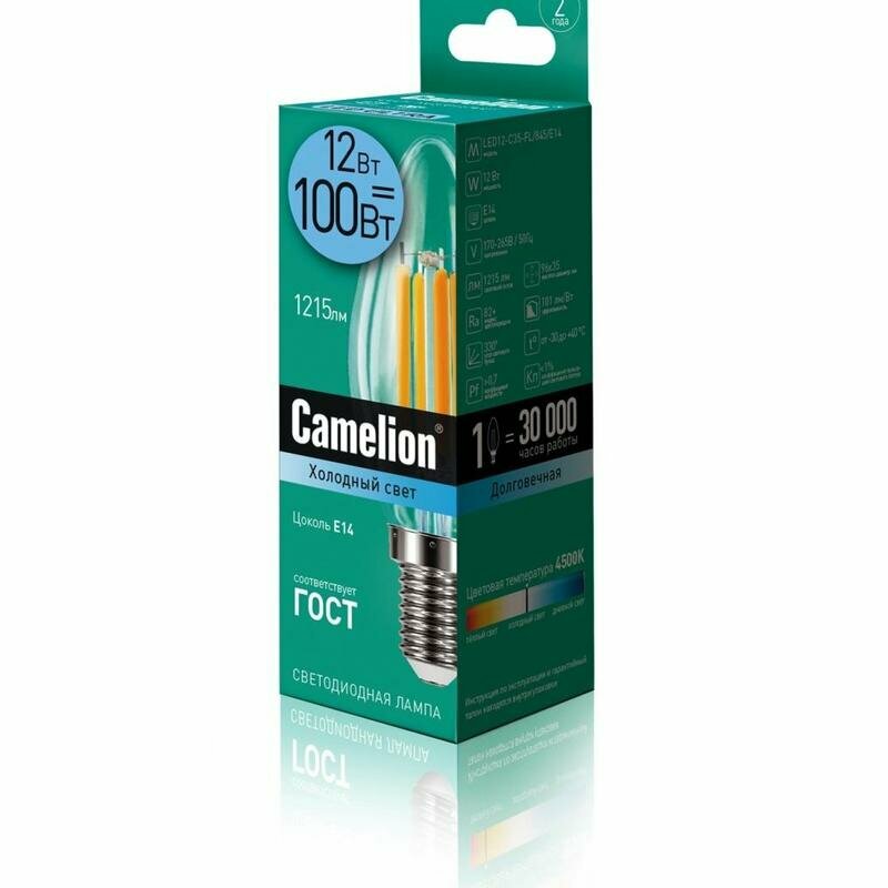 Лампочка CAMELION LED12-C35-FL/845/E14 12 Вт, Е14, прозрачный