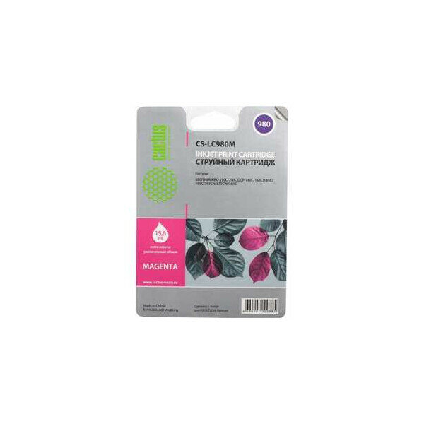 Картридж Cactus CS-LC980M струйный картридж (Brother LC-980M) 16 мл, пурпурный
