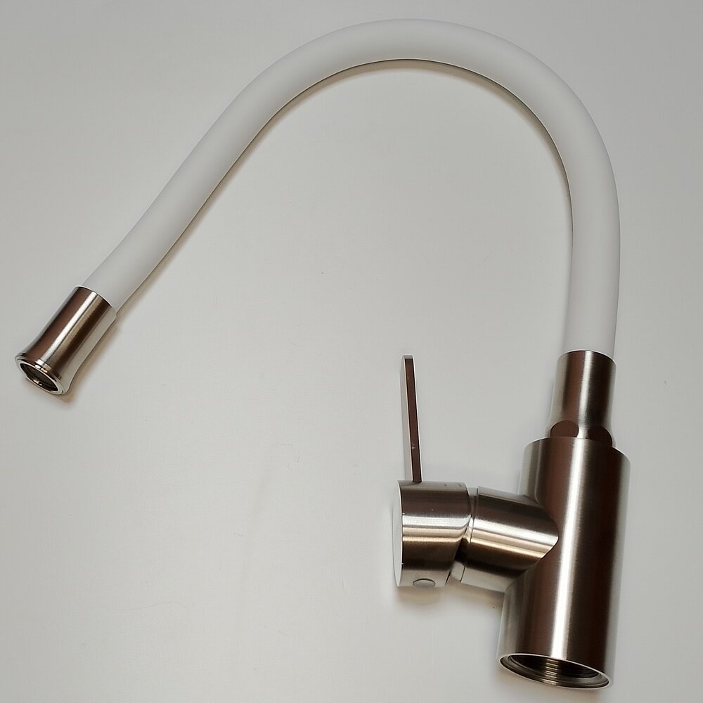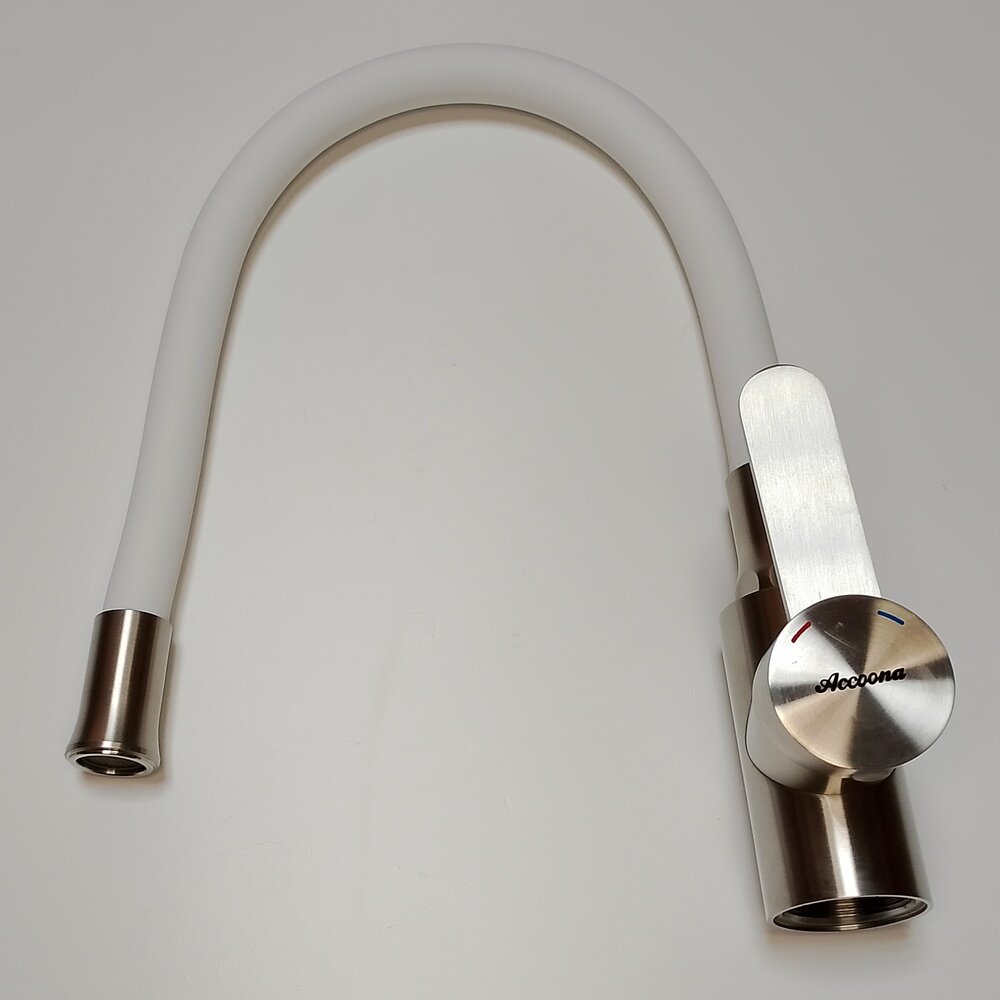 Смеситель кухня силиконовый излив (35) Нержавеющая сталь+Белый Accoona A48104G