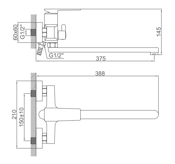 Смеситель ванна прямой нос (35), дивертор в корпусе, латунь Accoona A71124F