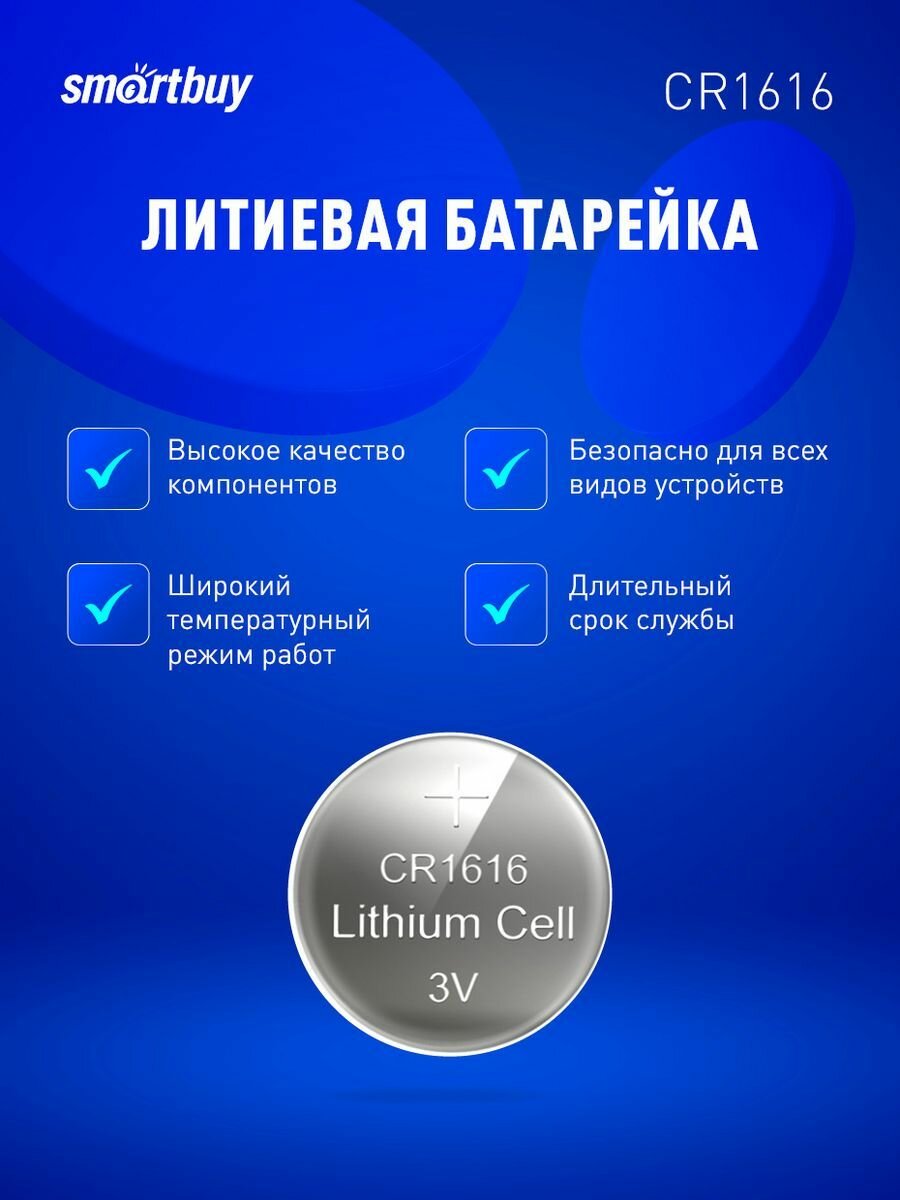 Батарейка SmartBuy CR1616-1BL, 3В, (1/12/72), 1шт