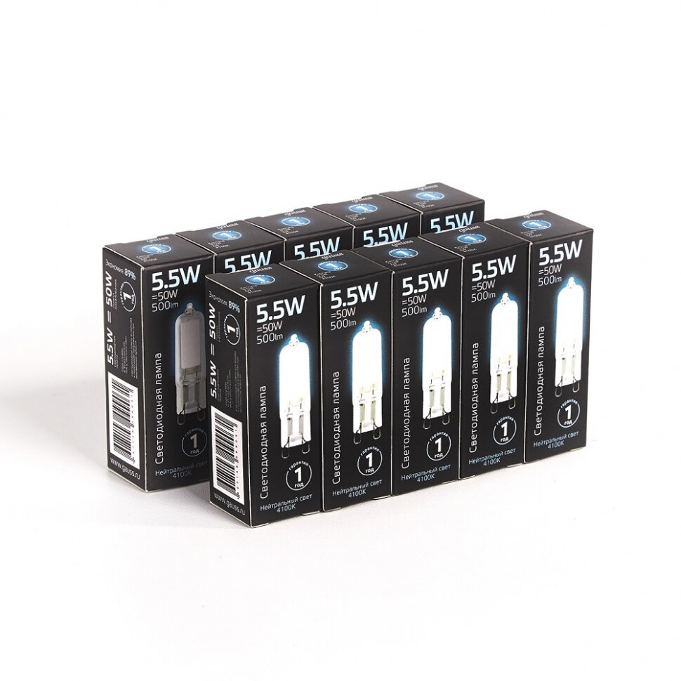 Набор из 5 штук Лампа Gauss G9 AC220-240V 5.5W 500lm 4100K стекло LED 1/10/200