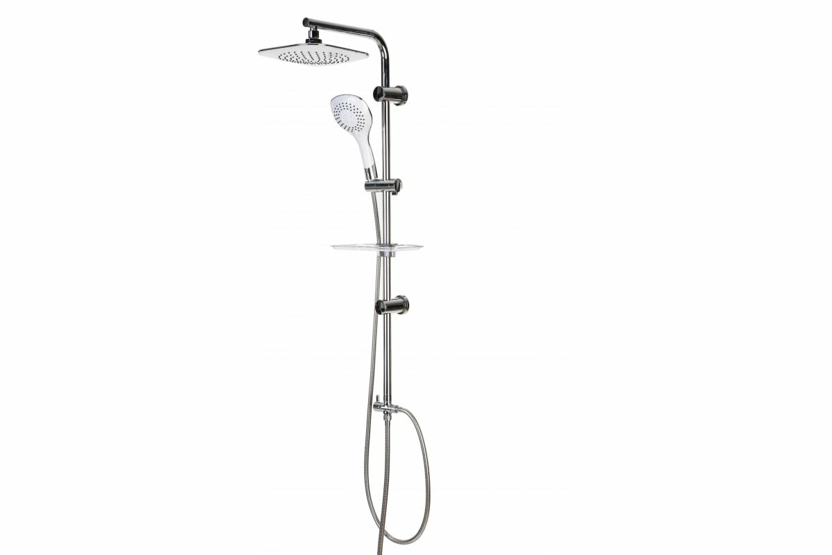 | Комплектация | штанга (22х0.5 мм / нержавеющая сталь SUS304) / верхний душ с функцией регулировки угла излива / лейка душевая (5 режимов) / душевой шланг (1.5 м / двойной замок) / шланг подключения к смесителю (50 см) / поворотный дивертор (цинк) / мыльница пластиковая / крепления |