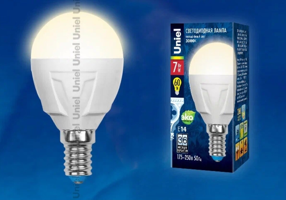 Типы/Лампочки/Светодиодные Uniel Лампа светодиодная Uniel E14 7W 3000K матовая LED-G45-7W/WW/E14/FR PLP01WH UL-00000773