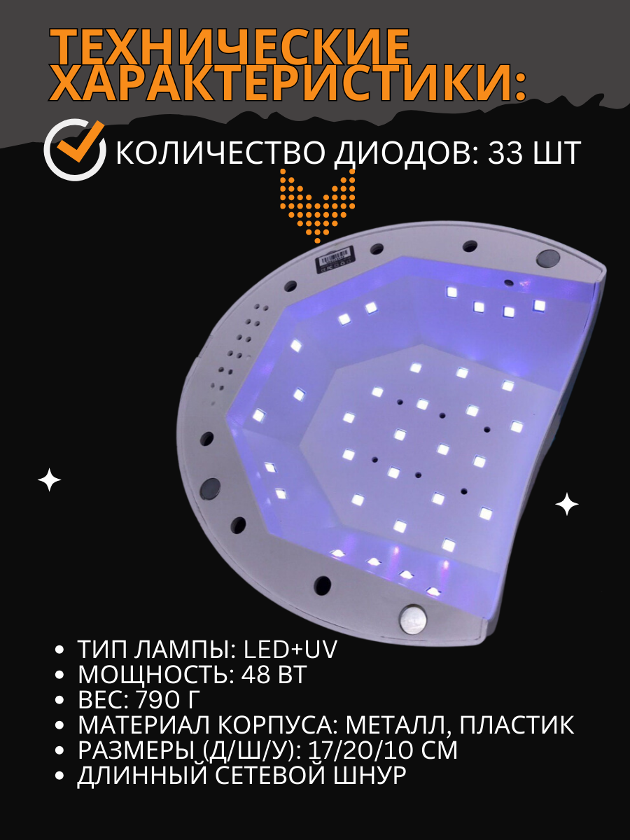 Лампа для маникюра SUNUV Sun 2C мощная гибридная уф лэд для ногтей и гель-лака, белая, 48W