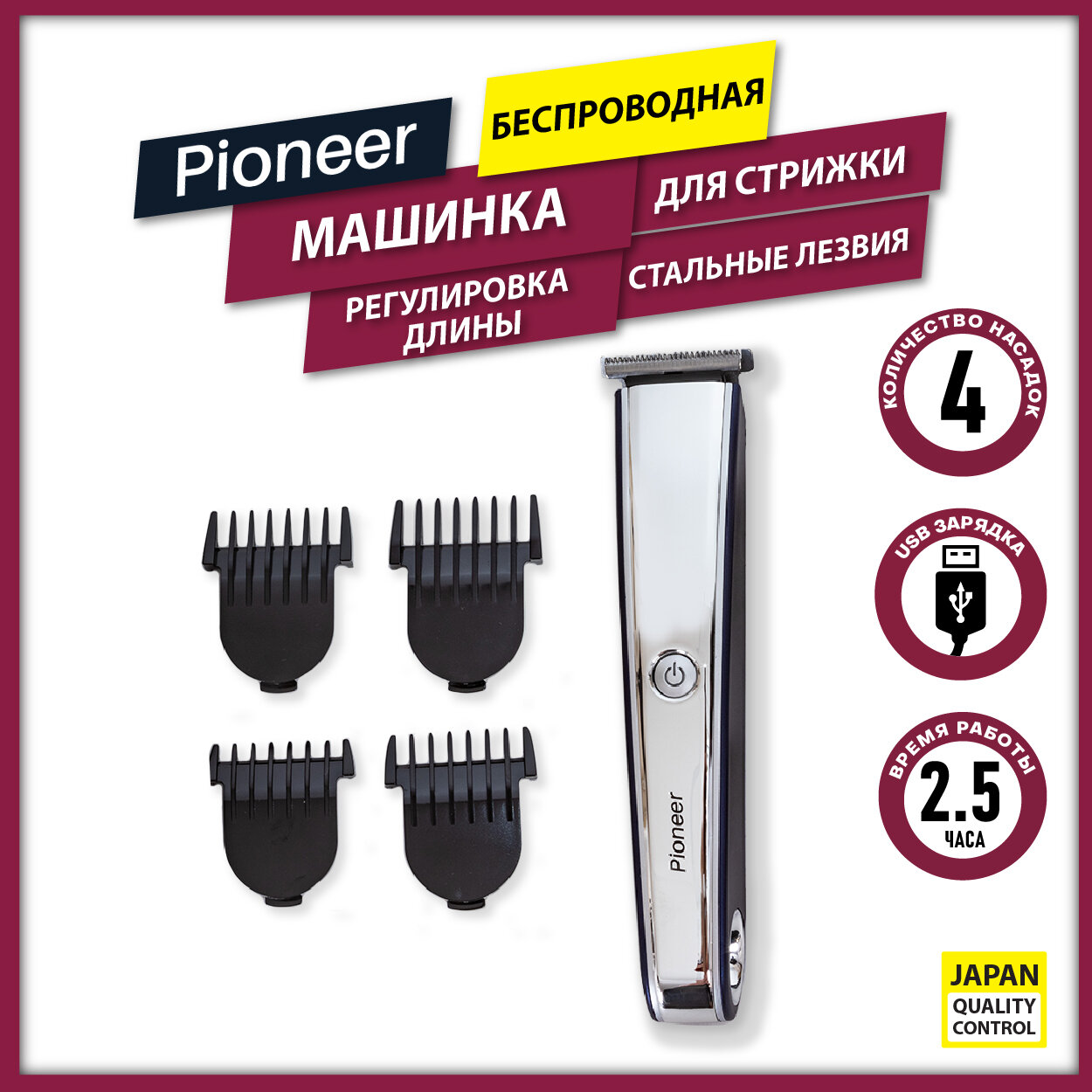Машинка для стрижки Pioneer беспроводная с LED-дисплеем, 4 съемными регулируемыми насадками 1,5мм / 3мм / 4,5мм / 6 мм и стальными лезвиями