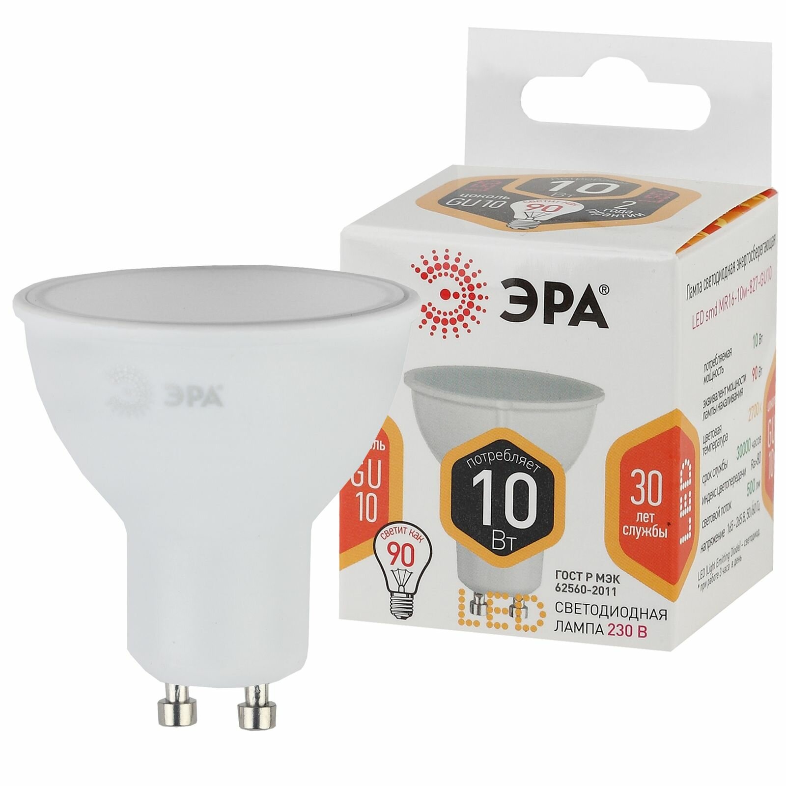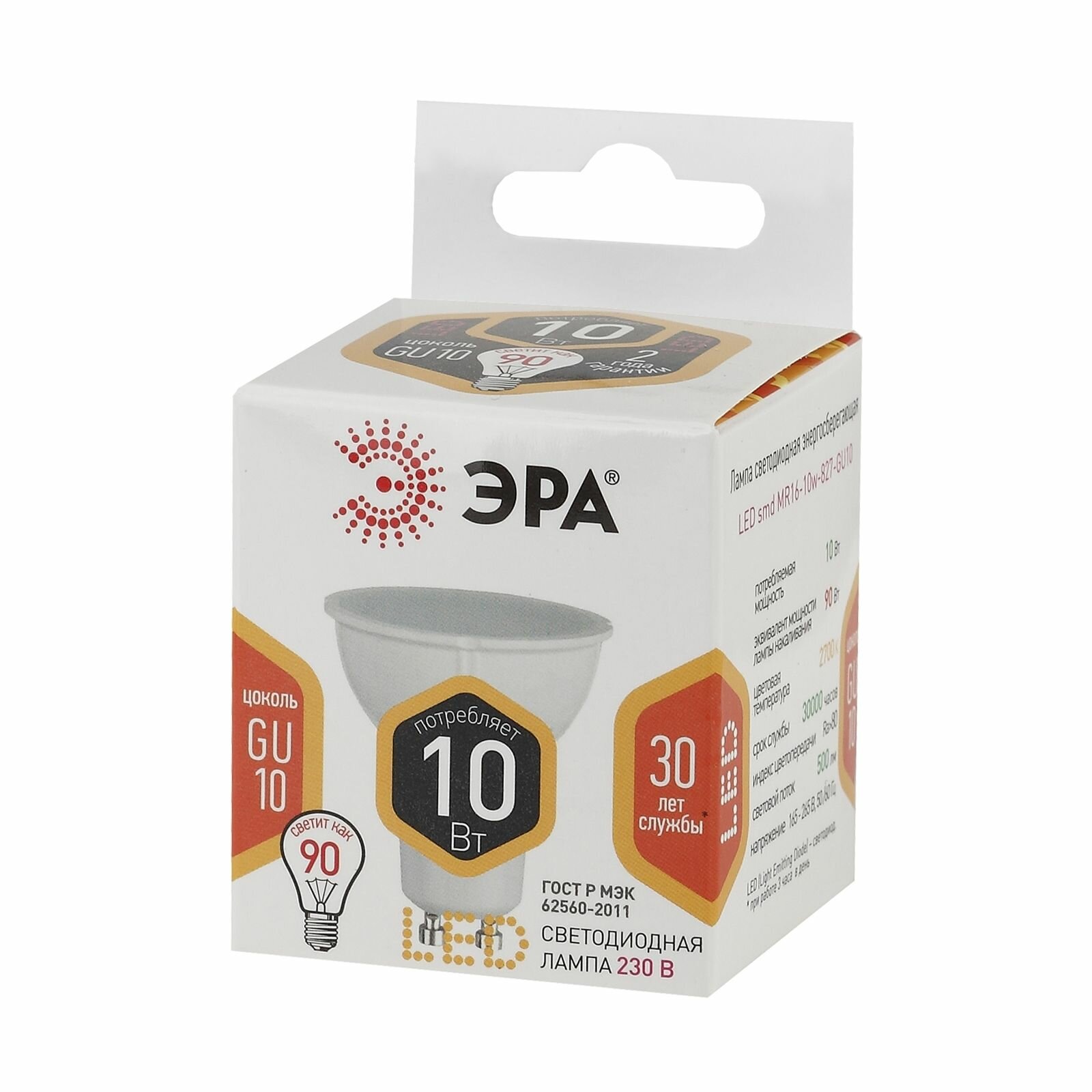 Купить Лампочка светодиодная ЭРА (набор 10 штук) STD LED MR16-10W-827-GU10 GU10 10ВТ софит теплый белый свет