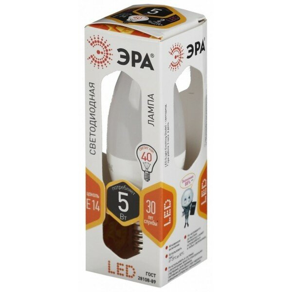 Лампа светодиодная B35-5w-827-E14 свеча 400лм, ЭРА Б0018871 (1 шт.)