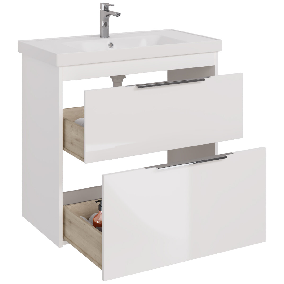 Тумба PRIME, 90 см, подвесная/напольная, 2 ящика, белый глянец