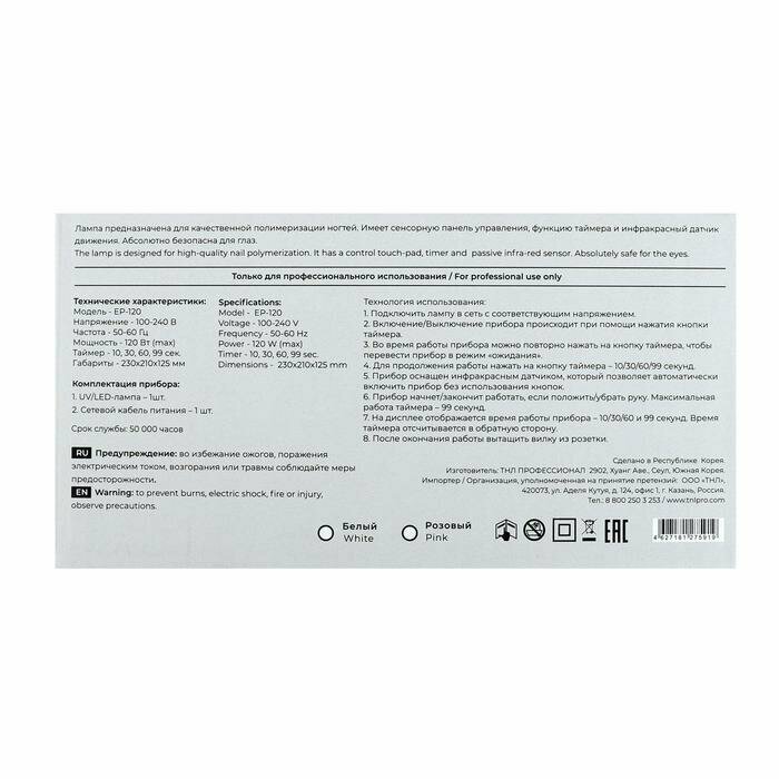 Купить Лампа для гель-лака TNL Easy Pro, UV/LED, 120 Вт, 36 диодов, таймер 10/30/60/99 с, белая